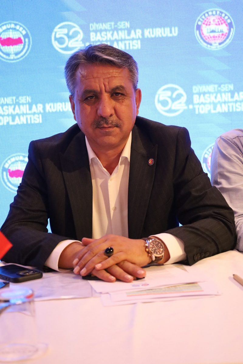 Dizelerini atıf yaparak “İşte bizler “buyruğun” getirdiği sorumlulukla medeniyet ruhunu milletle buluşturan teşkilatız. Biz sendikacılık yaptığımız kadar insanlık yükünü de sırtlayan bir hareketiz. Diyanet-Sen’li olmak bu davayı namus bilmek, Davayı hor ve öksüz koymamaktır. Çünkü biz medeniyet hamilleriyiz. Biz kadim kültürümüzün birikimiyiz. O nedenle yükümüz ağır, işimiz çok, yolumuz uzun. Bu ağır sorumluluğu taşımak kolay değil.Bunun için hem kemiyeti büyütmek, hem de keyfiyeti artırmak zorundayız. Sahada adım atılmadık yer bırakmamak, temas edilmedik din görevlisi, vakıf çalışanı koymamak zorundayız. Taşıdığımız sorumluluğu hissetmeyen bir tek işyeri temsilcisi kalmamalı. Bir tek teşkilat mensubu bile unutulmamalı. Bu büyük davada tek bir kişi bile önemli.Bu yüzden, hem bir adresi olmayanlara, hem de yanlış adreste olanlara gideceğiz.Kendimizi, derdimizi, kazanımlarımızı anlatacak, sayımızı daha da artıracak, heybeti daha büyütecek, bereketi daha da çoğaltacağız.” İfadelerine yer verdi.