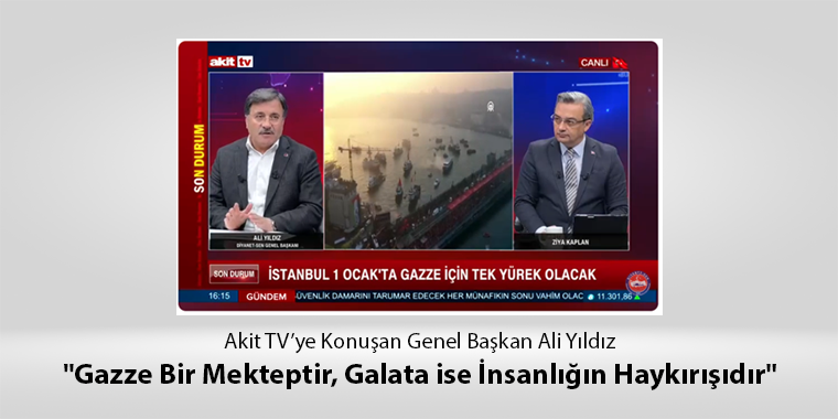 Diyanet-Sen Genel Başkanı Ali Yıldız, Akit TV ekranlarında katıldığı programda önemli açıklamalarda bulundu. Gazze’de yaşanan soykırıma dikkat çeken Yıldız, 1 Ocak’ta Galata Köprüsü’nde gerçekleştirilecek büyük buluşma için tüm Türkiye’ye çağrıda bulundu.