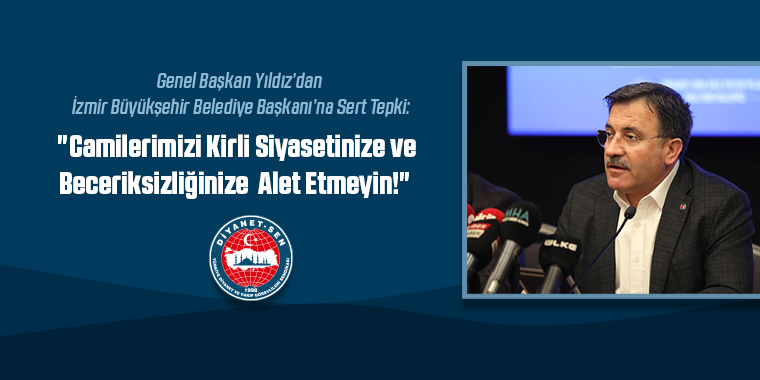 Diyanet-Sen Genel Başkanı Ali Yıldız, İzmir Büyükşehir Belediye Başkanı Cemil Tugay’ın şehirdeki su sorununa ilişkin yaptığı açıklamalara sert tepki gösterdi. Yıldız, su sorunundaki kayıp-kaçak oranlarının camilere bağlamasını "akıl dışı ve kötü niyetli bir saptırma" olarak nitelendirdi ve “İzmir’deki susuzluğun sebebi belediyenin sorumsuzluğudur. Camilerimizi kirli siyasetinize, beceriksizliğinize alet etmeyin” dedi.