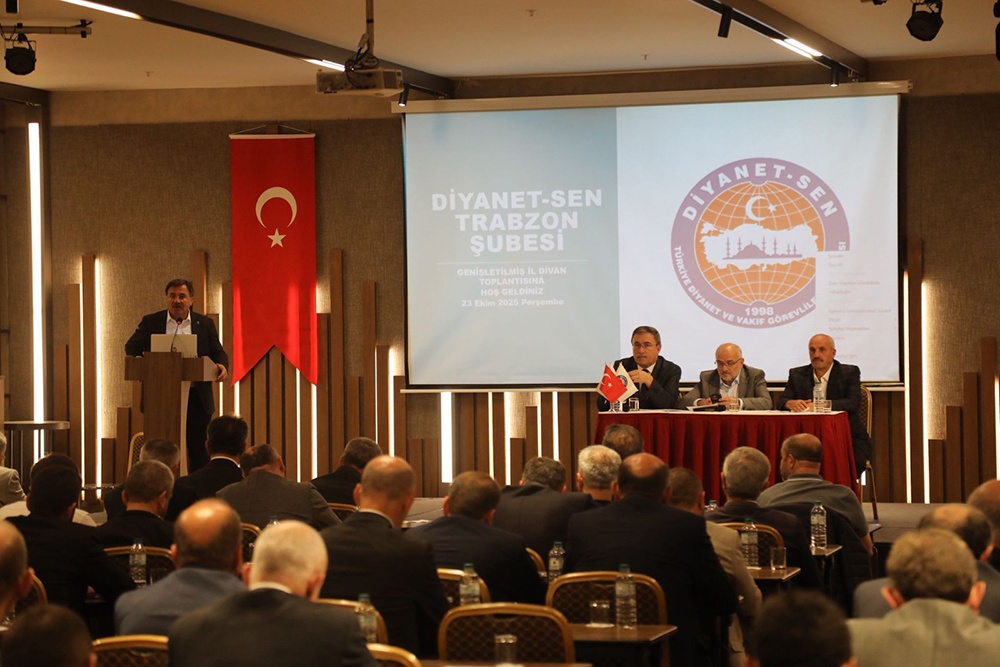 Diyanet-Sen Trabzon İl Divan Toplantısı Genel Başkan Ali Yıldız ve yönetim kurulu üyeleri, Şube Başkanı Metin Öztürk ve şube yönetimi, denetim ve disiplin kurulu üyeleri, ilçe ve iş yeri temsilcilerinin katılımı ile gerçekleştirildi.