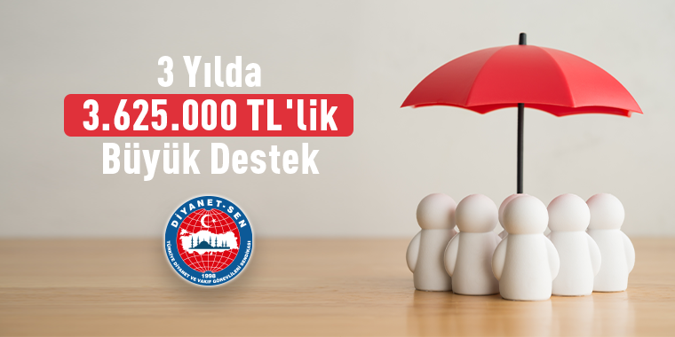 İlklerin, kalıcı iş ve eylemlerin sendikası Diyanet-Sen, sadece üyelerinin haklarını arama ve kazanma mücadelesinde değil, aynı zamanda hayatın beklenmedik zorluklarında üyelerinin ve onların ailelerinin yanlarında olmaya devam ediyor. Bu kapsamada vefat eden üyelerimizin yasal varislerine 75.000 TL ödeme yapılırken, sakatlık durumunda sakatlık oranına göre üyemizin kendisine bir ödeme yapılmaktadır. Şubat 2026 itibariyle de 100.000 TL olarak dönemeye devam edecek.