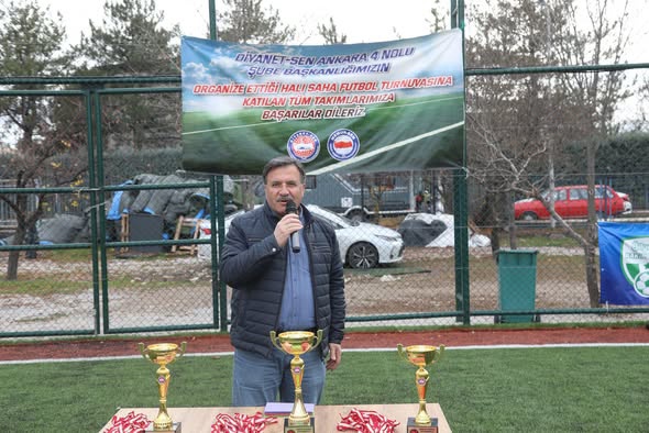 Genel Başkan Ali Yıldız Diyanet-Sen Ankara 4 Nolu Şubenin organize ettiği Diyanet İşleri Başkanlığı Merkez Birimleri Arası Futbol Turnuvasında şampiyon olan ve dereceye giren takımlara ödül ve kupalarını takdim etti.
