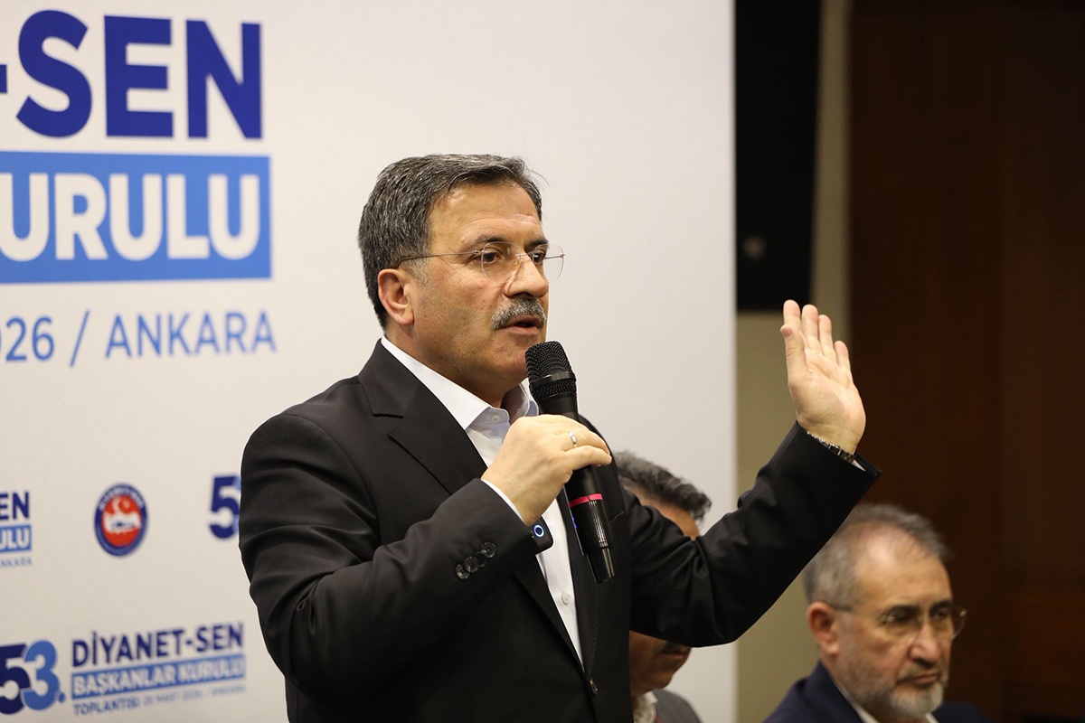 Din görevlilerinin sadece cami ve kurslarda değil, toplumun her alanında rehberlik ettiğini belirten Yalçın; "Sahanın nabzını tutan şube başkanlarımızın getirdiği her talep, bizim için bir çözüm dosyasıdır. Diyanet ve vakıf çalışanlarımızın beklentilerini kazanıma dönüştürmek için masada ve sahada mücadelemizi sürdürüyoruz," dedi.