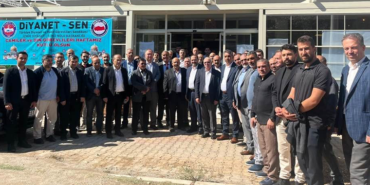 Diyanet-Sen İzmir 2 Nolu Şube’nin Camiler ve Din Görevlileri Haftası münasebetiyle düzenlediği toplantıya Genel Başkan Yardımcıları İrfan Kaşıkçıoğlu, Nazif Kocaçoban, Şube Başkanı Nail Çelik ve yönetimi, Memur-Sen İl Temsilcisi, İzmir 1 Nolu Şube Başkanı Nail Çelik, İlçe Müftüleri, ve din görevlileri katıldı.
